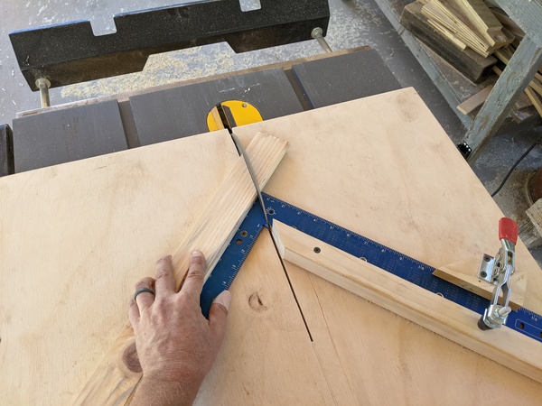 I used a miter jig to cut the corners of each board. The jig makes it easy to size the boards to the exact dimensions of the artwork.