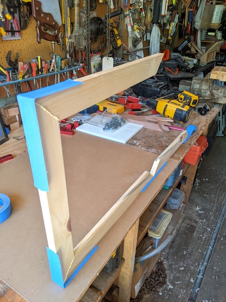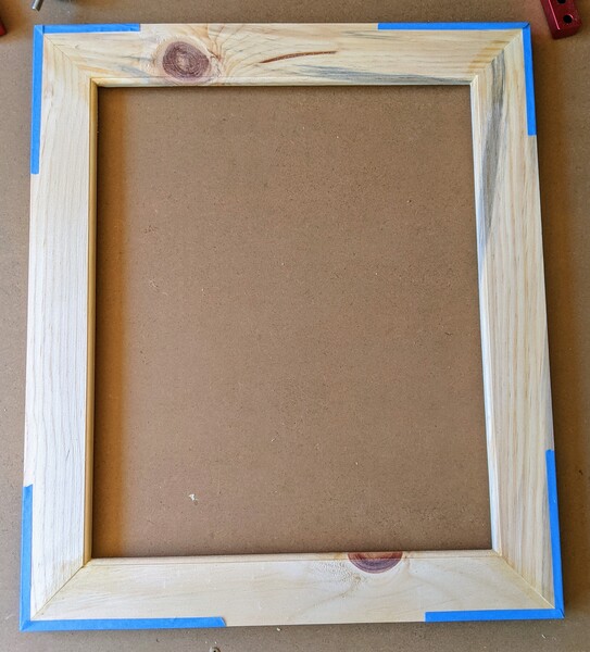 The frames were assembled with glue and painter's tape was used to hold the frame's shape while the glue dried.