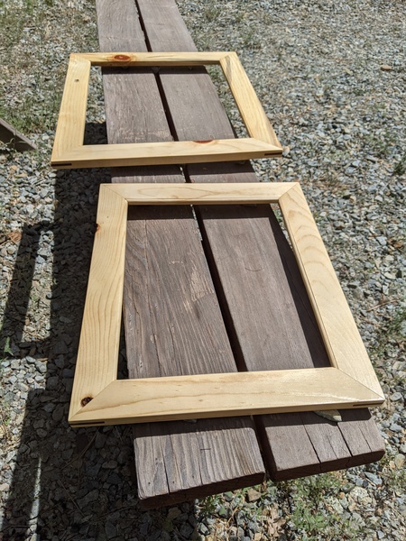 The wood for the frames came from a Sugar Pine in the middle of the property. It was weakened by many years of drought and insects and broke last year during a heavy snowfall.